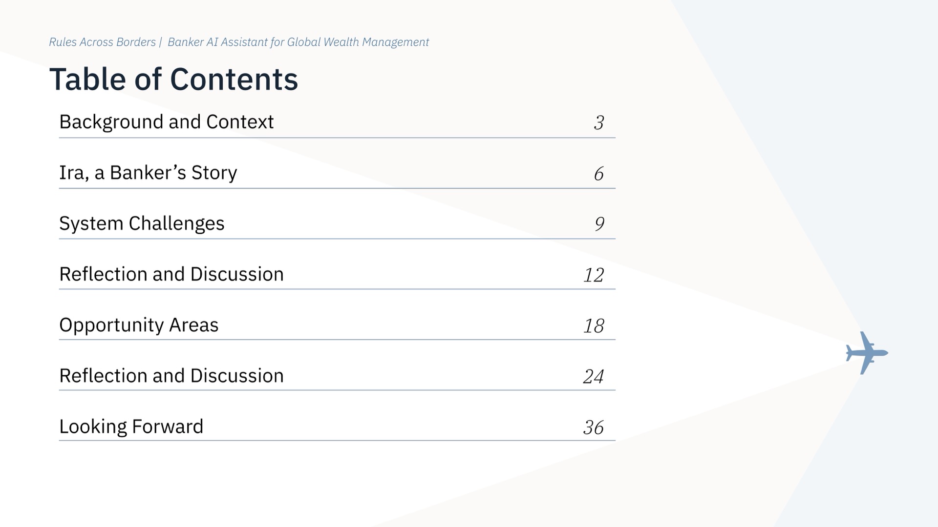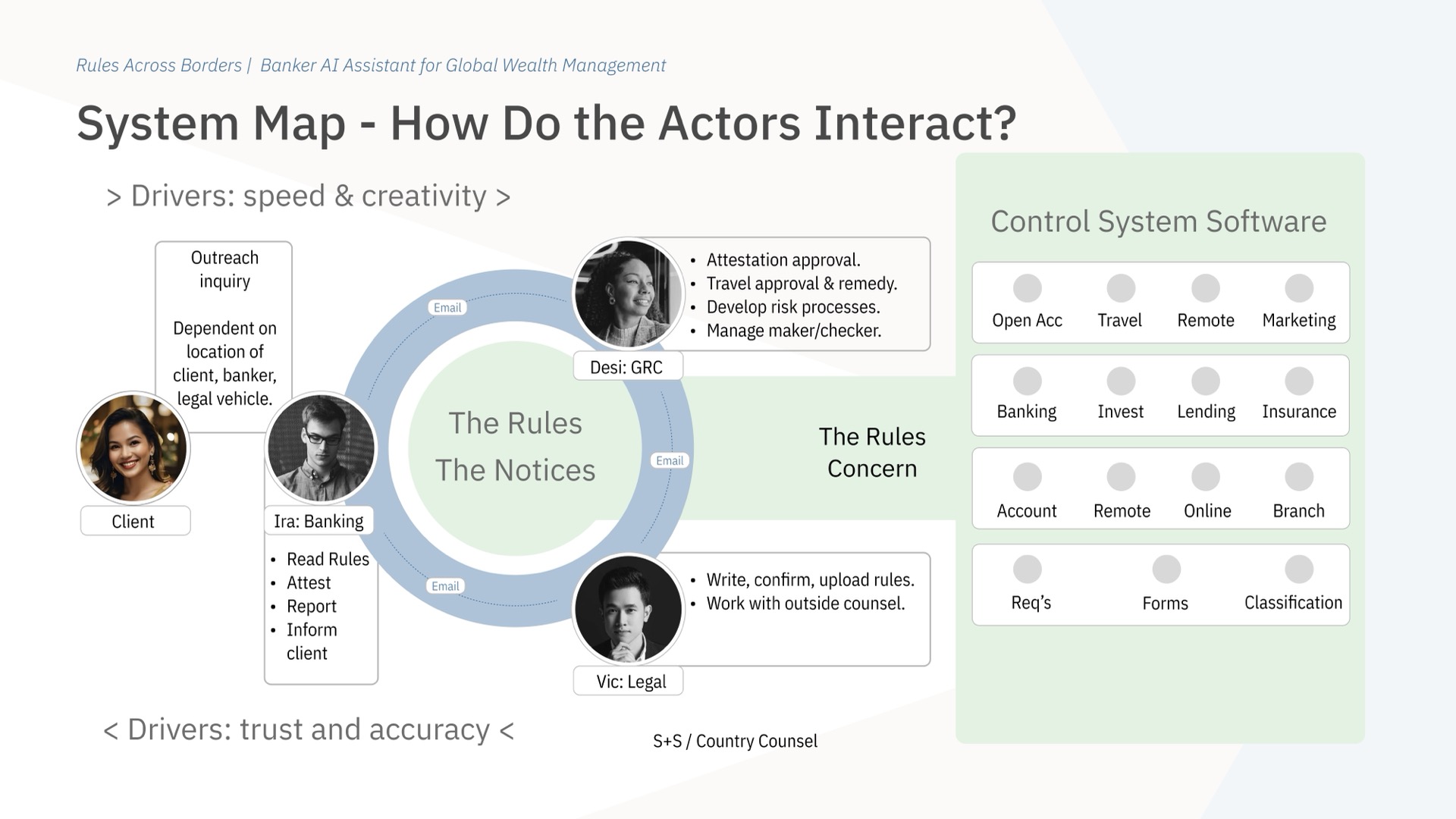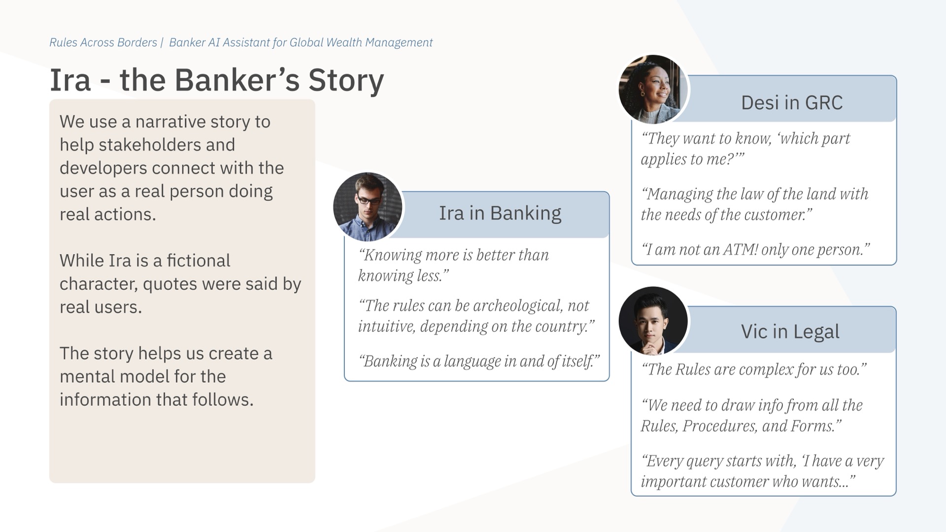 Cross-border wealth advisors, high net worth clients, AI pilot team, business intelligence team, legal, risk, compliance teams.