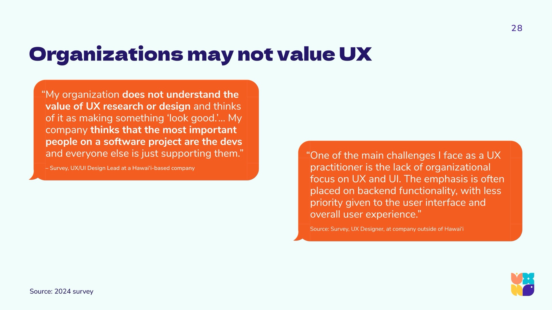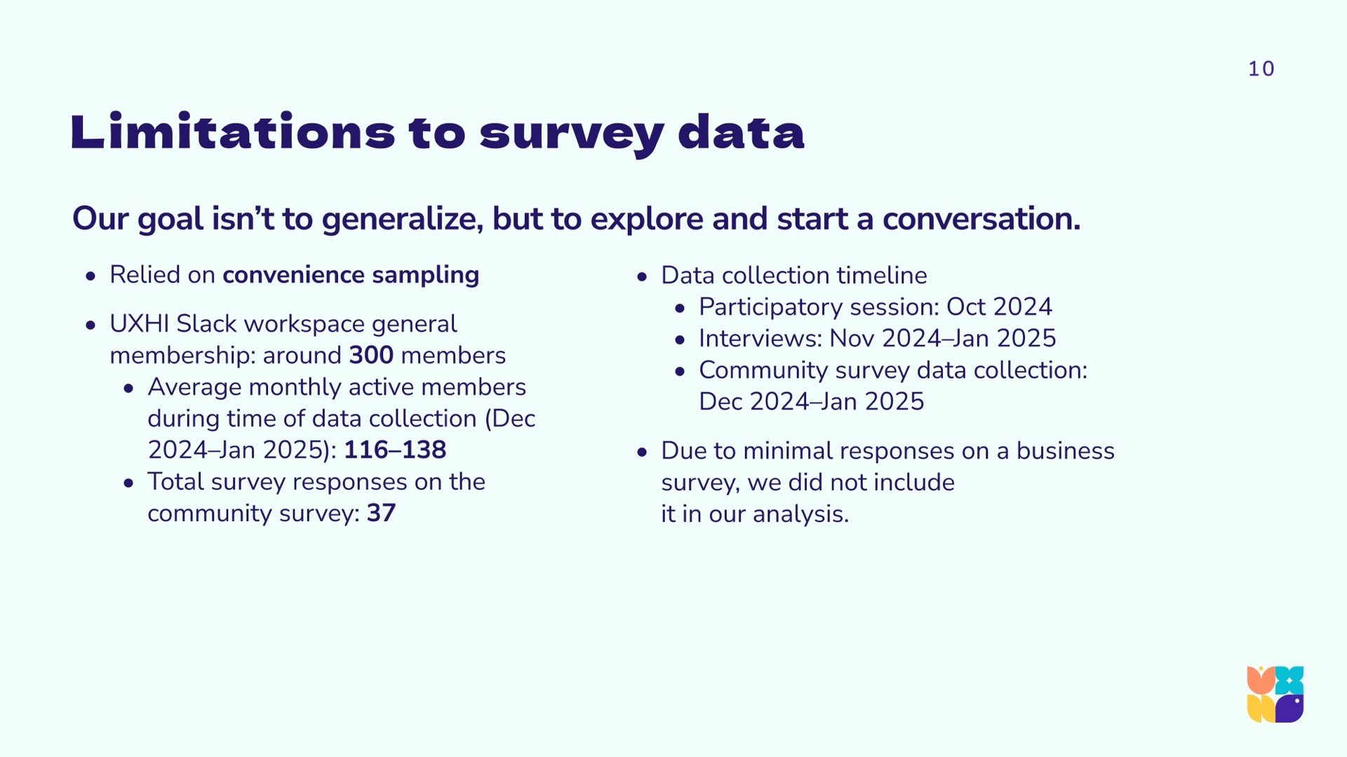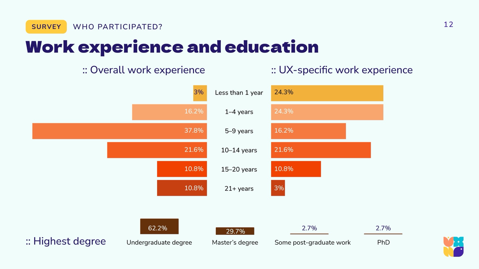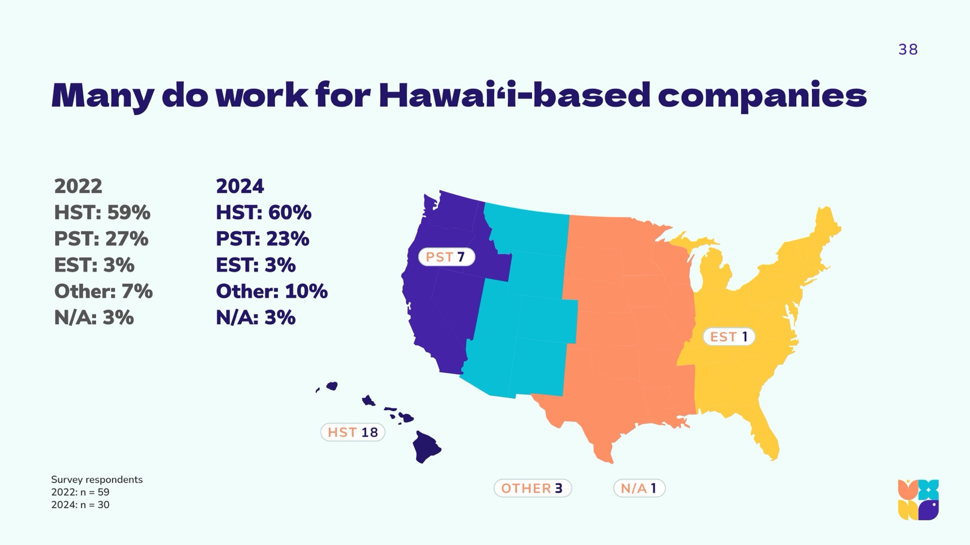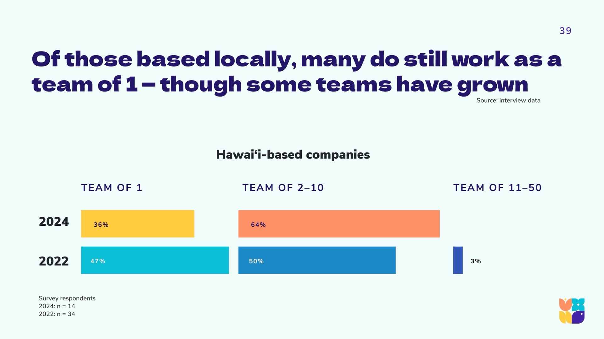 To arrive at a holistic picture of the state of UX in Hawaiʻi, the research team used a community-driven mixed-methods approach, synthesizing and triangulating qualitative and quantitative data. We aimed to hear from across industries and sectors, as the previous 2022 report was largely self-reflective within the design community. Using LinkedIn, personal networks, and open calls during technology and innovation events, we gathered a spectrum of viewpoints from around the islands and abroad.